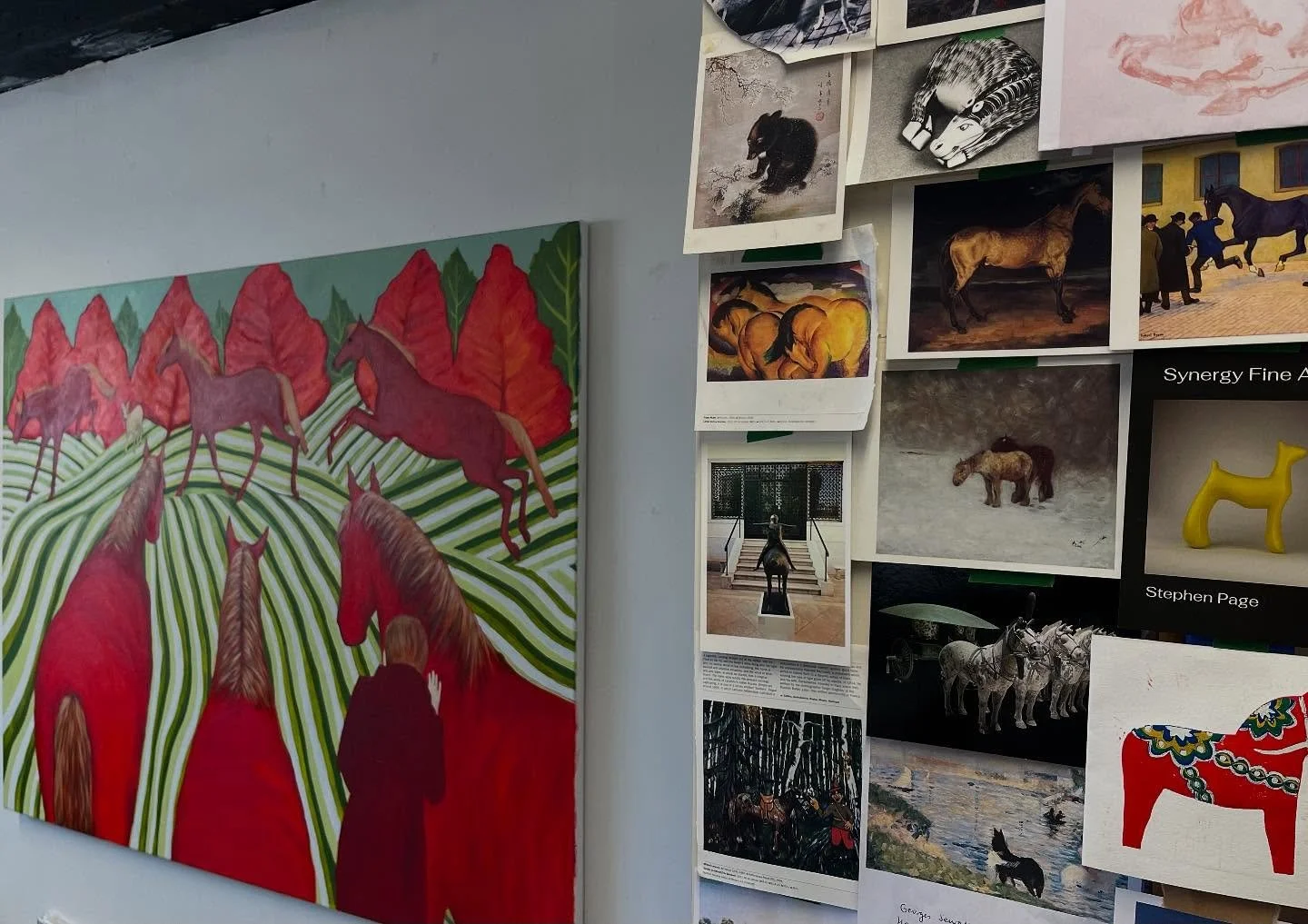 I painted this during my artist residency in Shetland in 2023. I was staying in ‘The Booth’ in Scalloway harbour which led to many ‘sea-inspired’ moments. This figure kayaking across the bay was completely mesmerising as the surface was glittering in beams and circles of sunlight.
