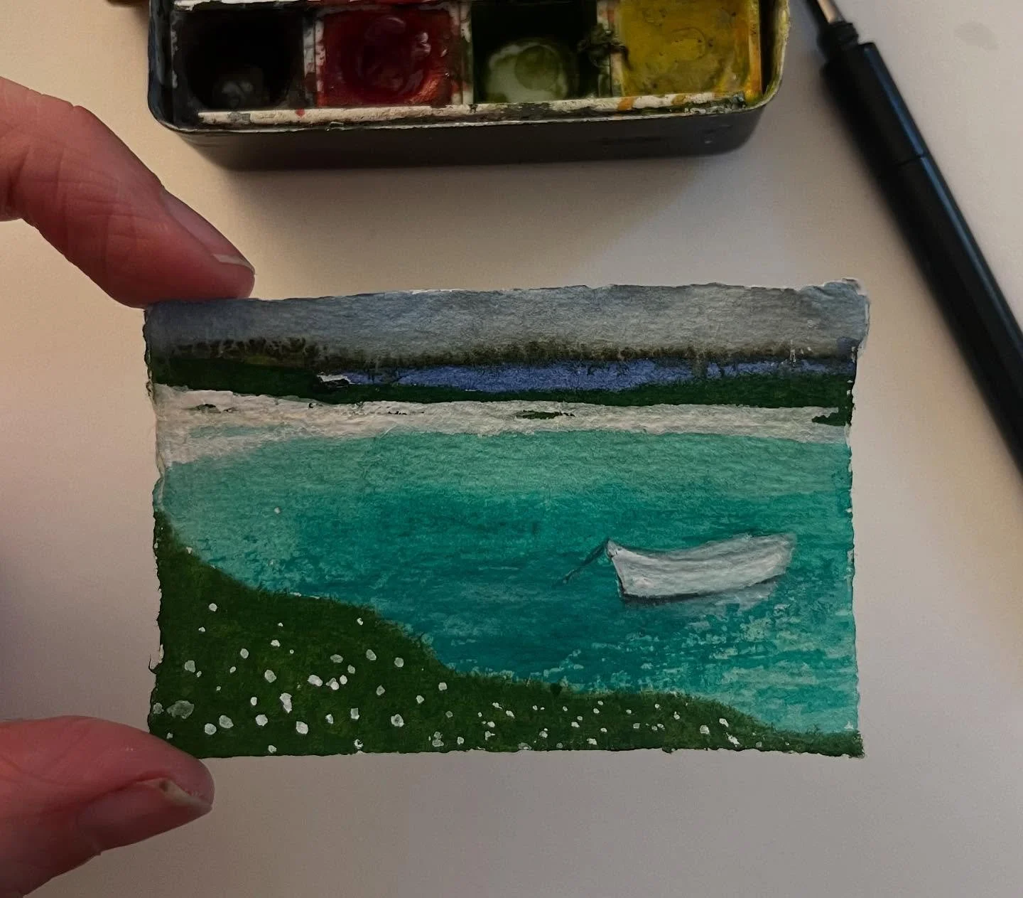 This painting is offered unframed at £100 or can be framed simply in a white wooden square framed for £125. Prices include free shipping in the UK. *
